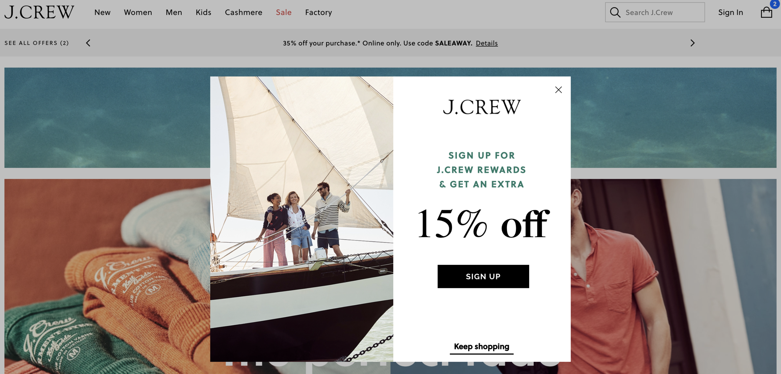 This tactic is used extensively by retailers. Here’s an example from one of my favorite clothing brands (you can see I have several items in my cart).
